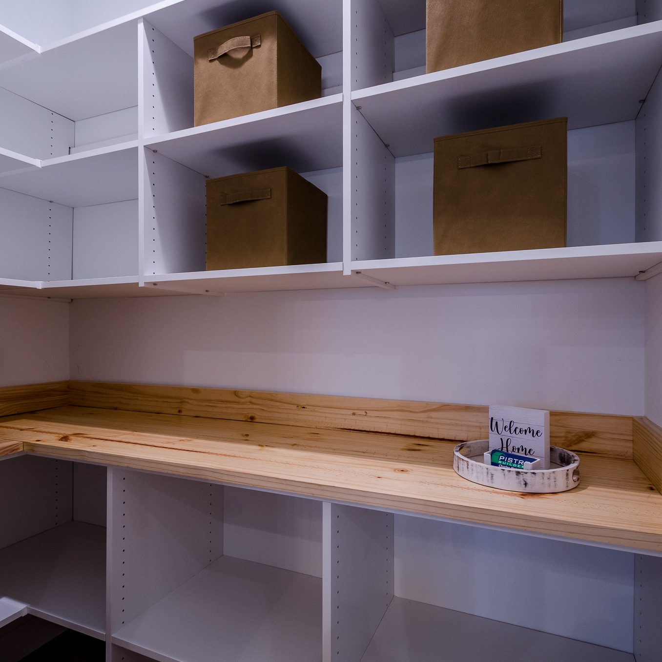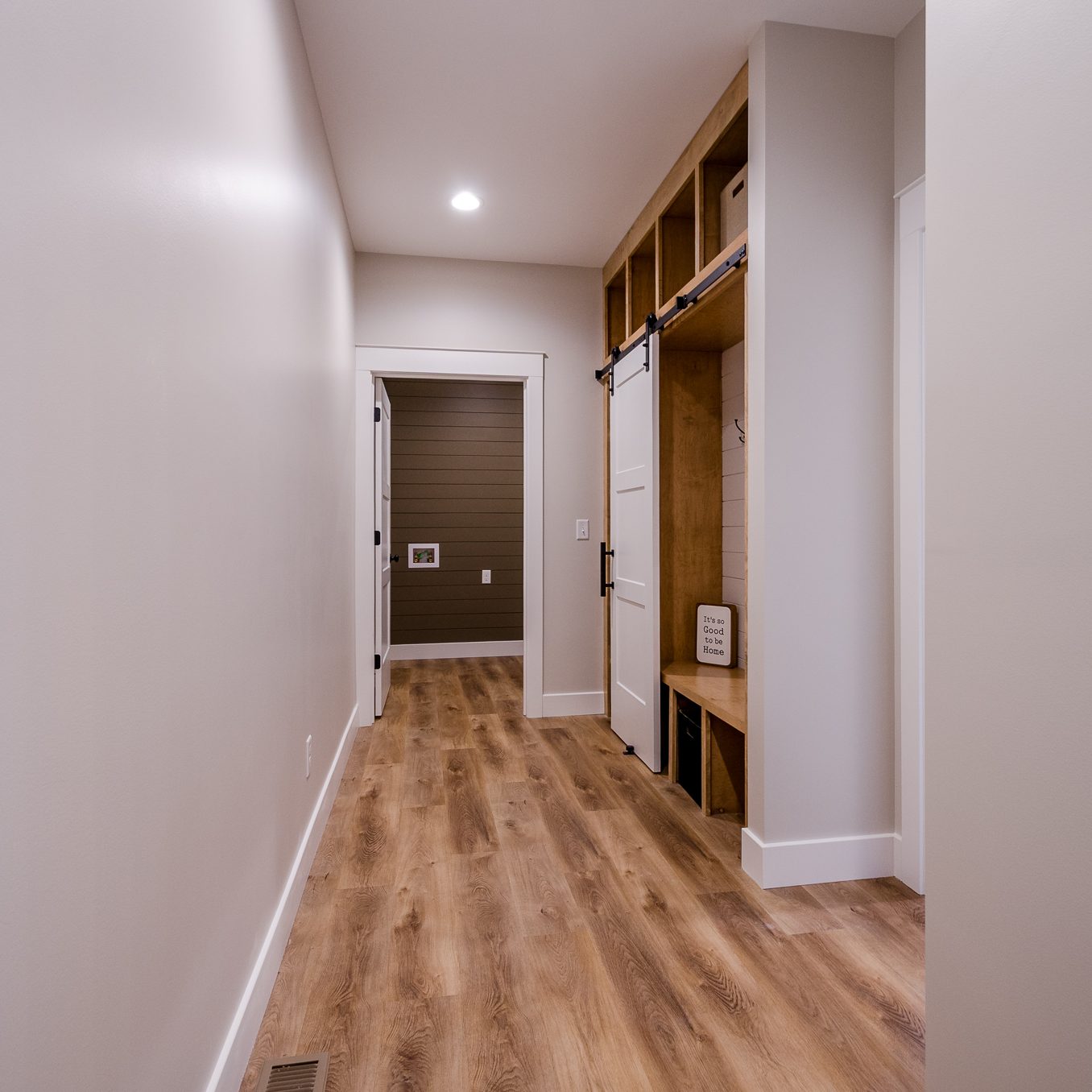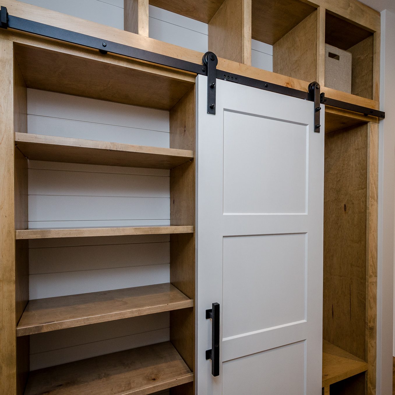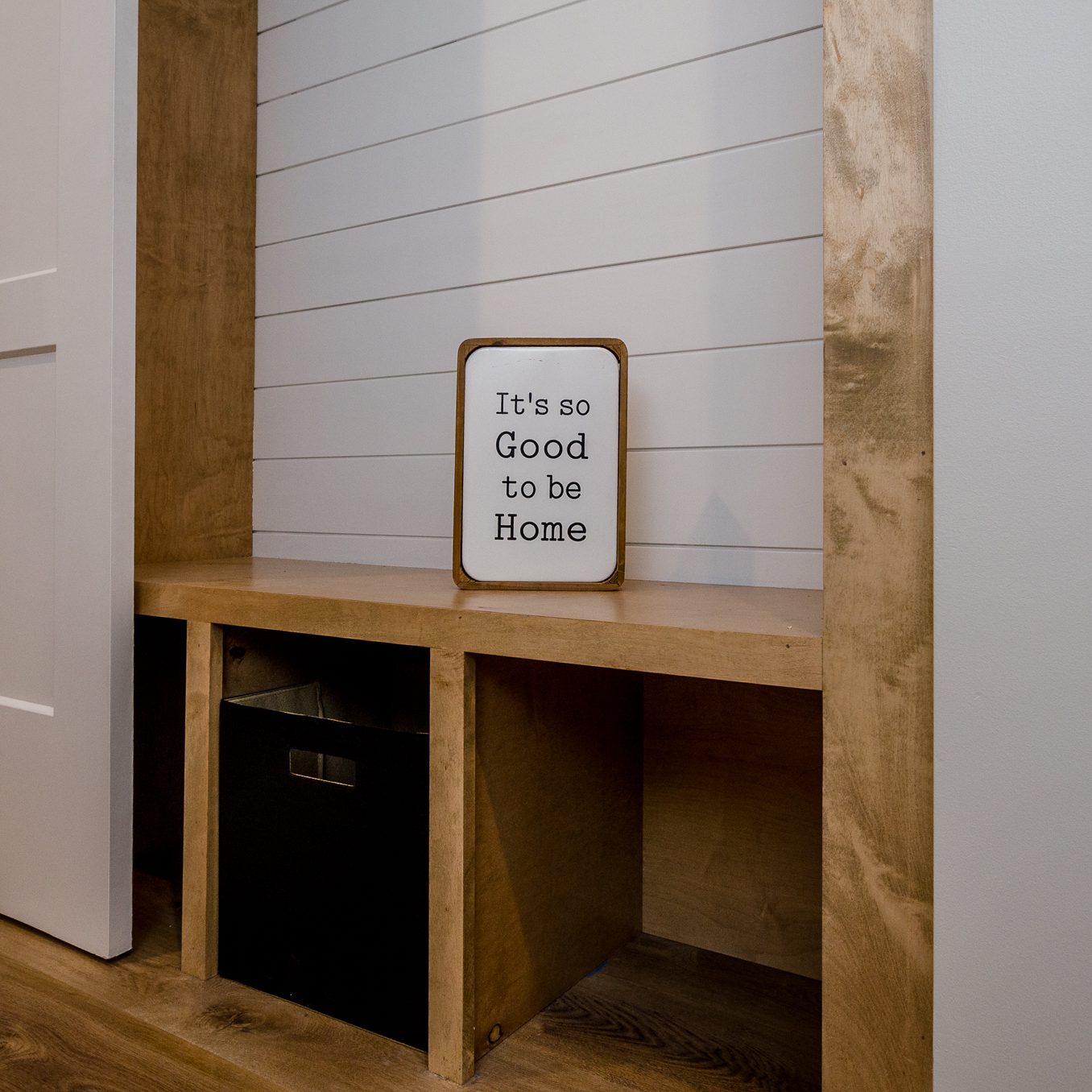 Thoughtfully designed mudroom with cubbies and hidden shoe closet